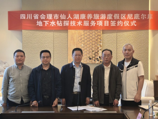 为充分发挥双方技术、人才、资源互补优势,协同赋能项目建设,双方签署了“四川省会理市仙人湖康养旅游度假区尼底尔库地下水钻探技术服务”项目合作协议。该项目将聚焦仙人湖康养旅游度假区规划建设核心需求,精准开展地下水钻探技术服务,全面提供可靠、翔实的水文地质数据支撑,为度假区科学规划、安全建设保驾护航。